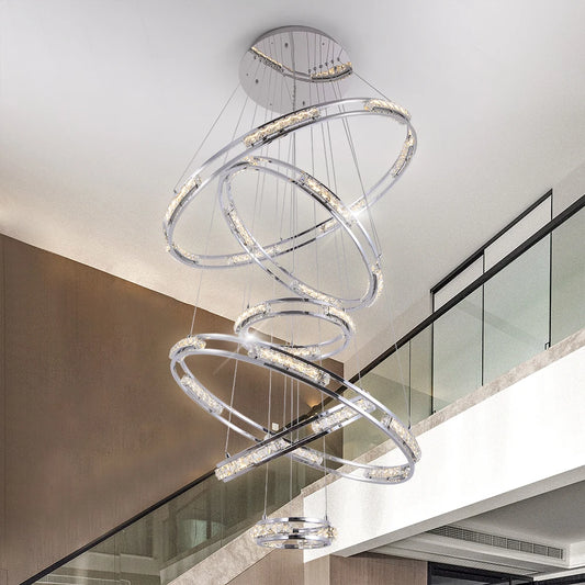 Luxurious LED Chandelier with Cascading Crystal Rings