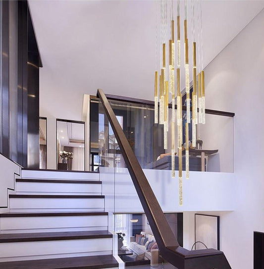 Luxury Copper & Crystal Stair Pendant | Postmodern Duplex/Villa Light | Simple, Elegant Atmosphere | Rotatable